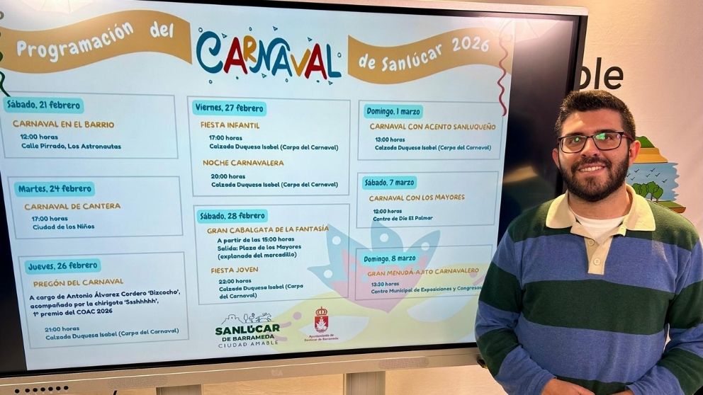 La Cabalgata del Carnaval de Sanlúcar 2026 vuelve a la ciudad para ser uno de los puntos fuertes de esta fiesta carnavalera. Así lo ha anunciado el delegado de Fiestas, Narciso Vital, que ha presentado la programación oficial destacando como principal novedad que este desfile de fantasía se celebrará el 28 de febrero.
