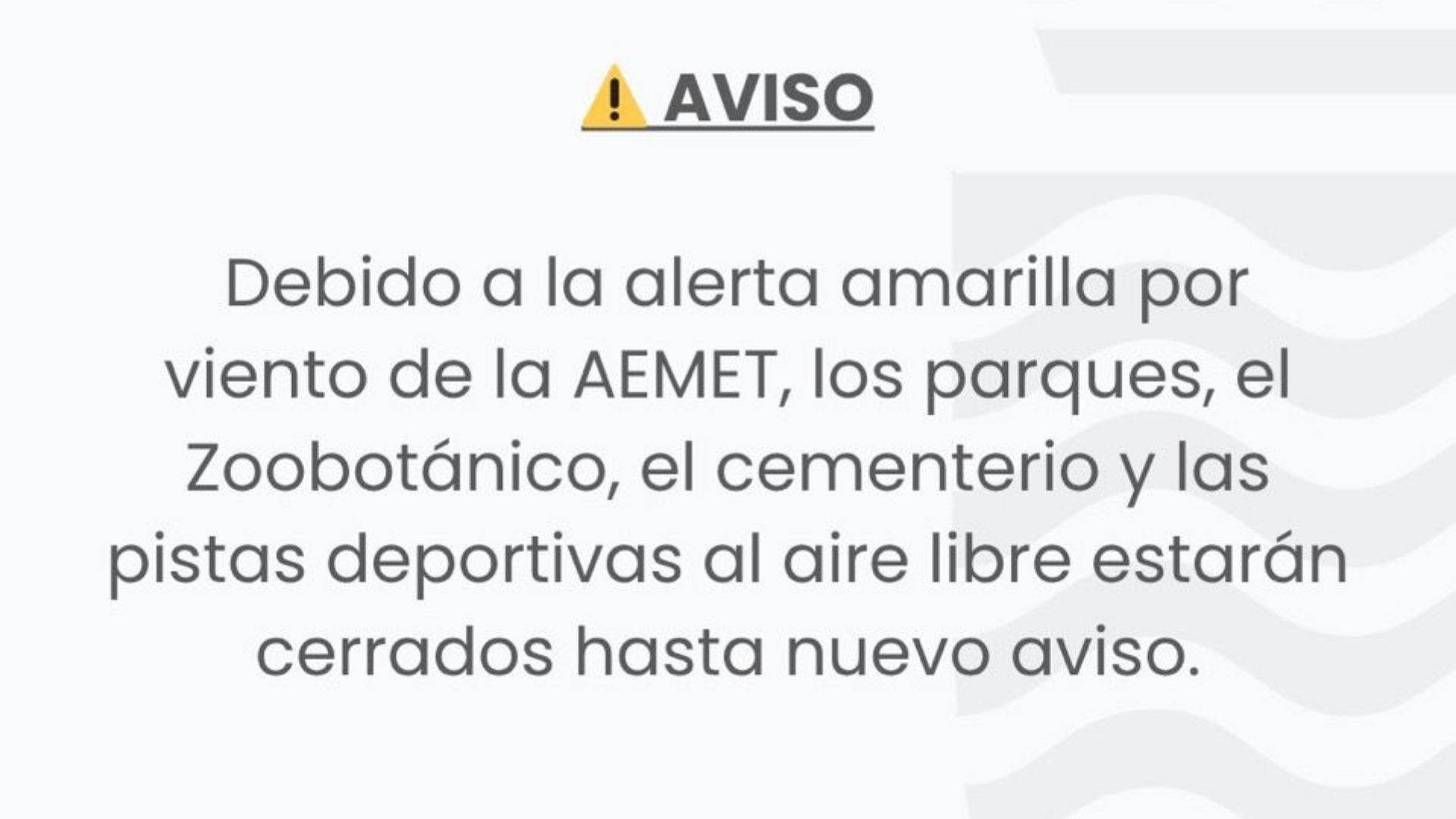 Desde el Ayuntamiento se ha pedido a la ciudadanía que evite acudir a zonas verdes, parques, plazas o espacios con arbolado, y que no accedan a los recintos cerrados por seguridad, hasta nuevo aviso. Los servicios municipales evaluarán la situación meteorológica durante las próximas horas y comunicarán la reapertura de los espacios públicos una vez que las condiciones sean seguras.