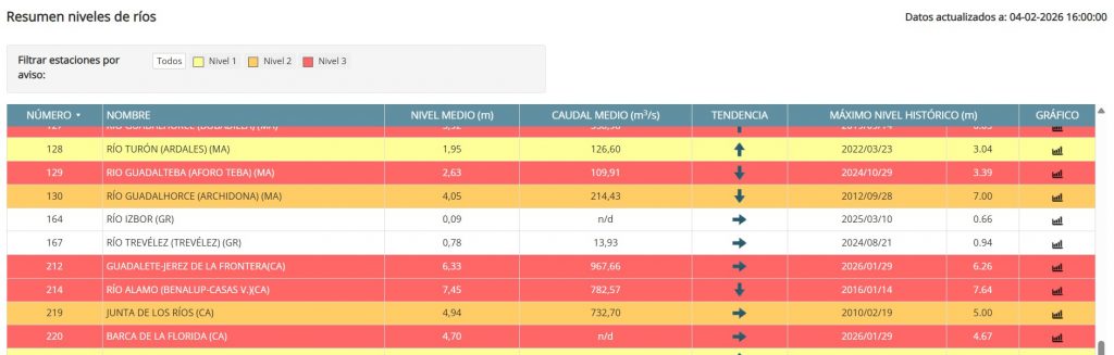 Nivel actual del Guadalete y evolución