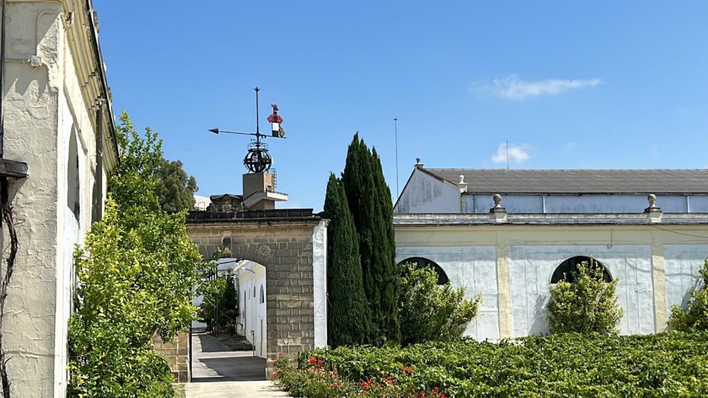 El instrumento, destinado a medir la dirección del viento, pertenece a Bodegas González Byass, una firma centenaria con más de 180 años de historia, reconocida internacionalmente y visita imprescindible para quienes llegan por primera vez a la ciudad. La veleta, diseñada por los hermanos Clavijo, rinde homenaje al vino más universal de la casa y está protagonizada por la inconfundible figura de Tío Pepe.