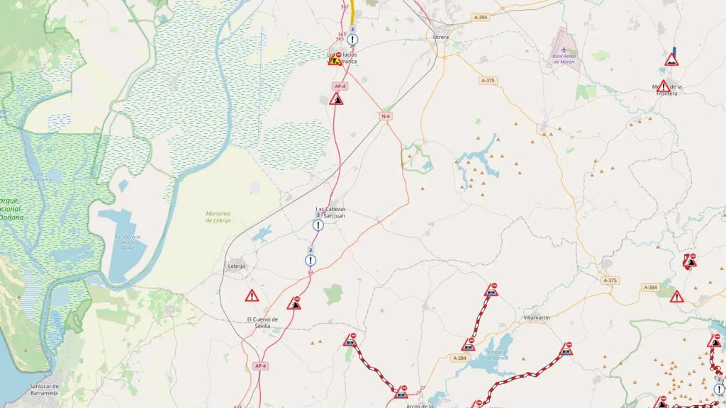 La jornada ha estado marcada por numerosos problemas en la red viaria andaluza como consecuencia del temporal. Además del cierre de la AP-4, se han registrado afecciones puntuales en otras vías principales, con cortes momentáneos, tráfico lento y desvíos obligatorios.