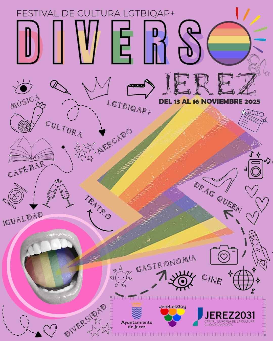 La ciudad de Jerez celebra la diversidad, una vez más, con el Festival de Cultura LGTBIQAP+ ‘Diverso Jerez’. El próximo jueves 13 de noviembre, el corazón de Jerez se llenará de color, arte y buen ambiente con el Festival de Cultura LGTBIQAP+ Diverso Jerez, una iniciativa que une al Ayuntamiento y a la Asociación Jerelesgay en una apuesta clara por la inclusión, la igualdad y la libertad de ser.