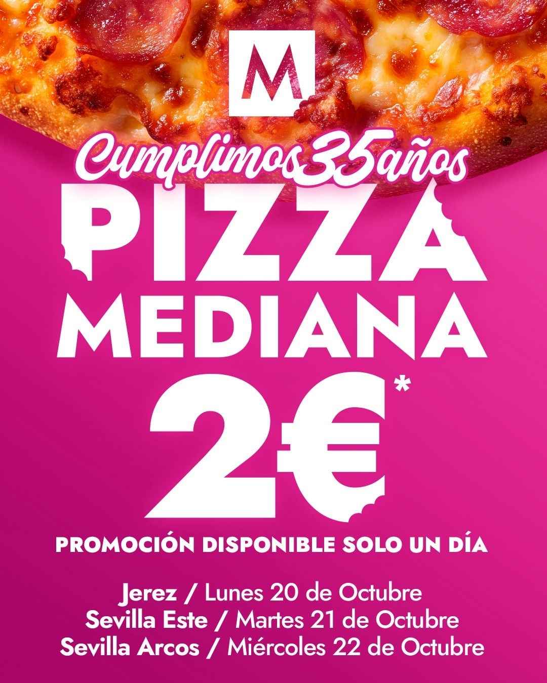 La familia de Marruzella ofrecerá a los jerezanos y jerezanas pizzas a 2 euros durante todo el día, desde la apertura hasta el cierre, para recoger en el local. Medianas a tan solo dos euros a elegir entre pollo, york o pepperoni. ¡Suena delicioso!