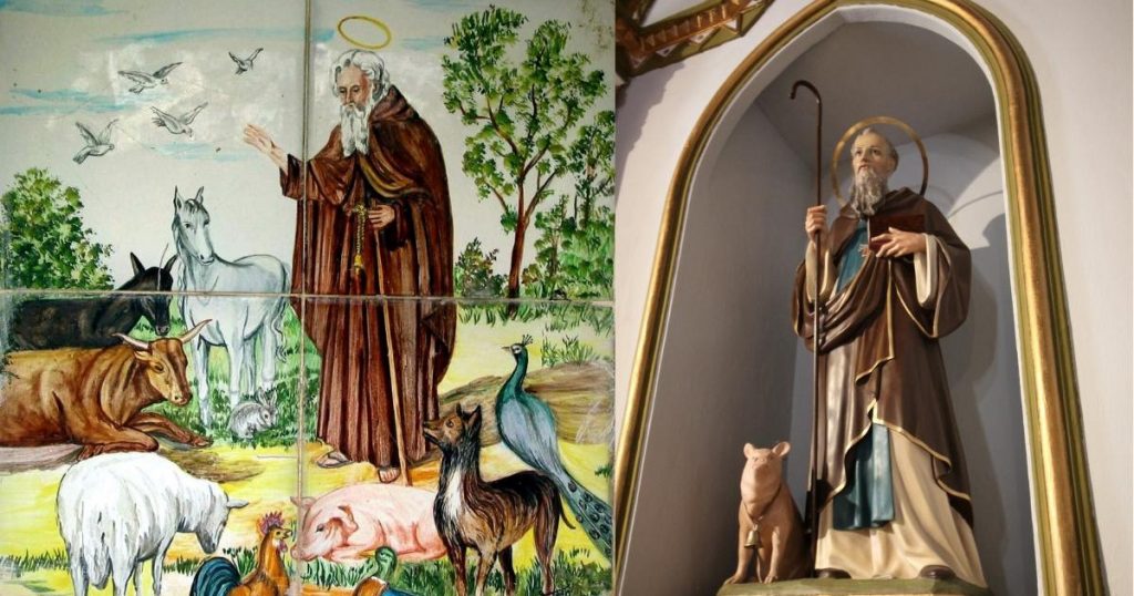 La imagen más popular del santo es la de un anciano acompañado de un cerdo, símbolo que no es casual. En la Edad Media, la Orden de los Antonianos cuidaba a enfermos y criaba cerdos que ayudaban a mantener los hospitales. Aquellos animales, que campaban libremente por los pueblos, acabaron convirtiéndose en el emblema del santo y en el origen de su vínculo con el mundo animal.